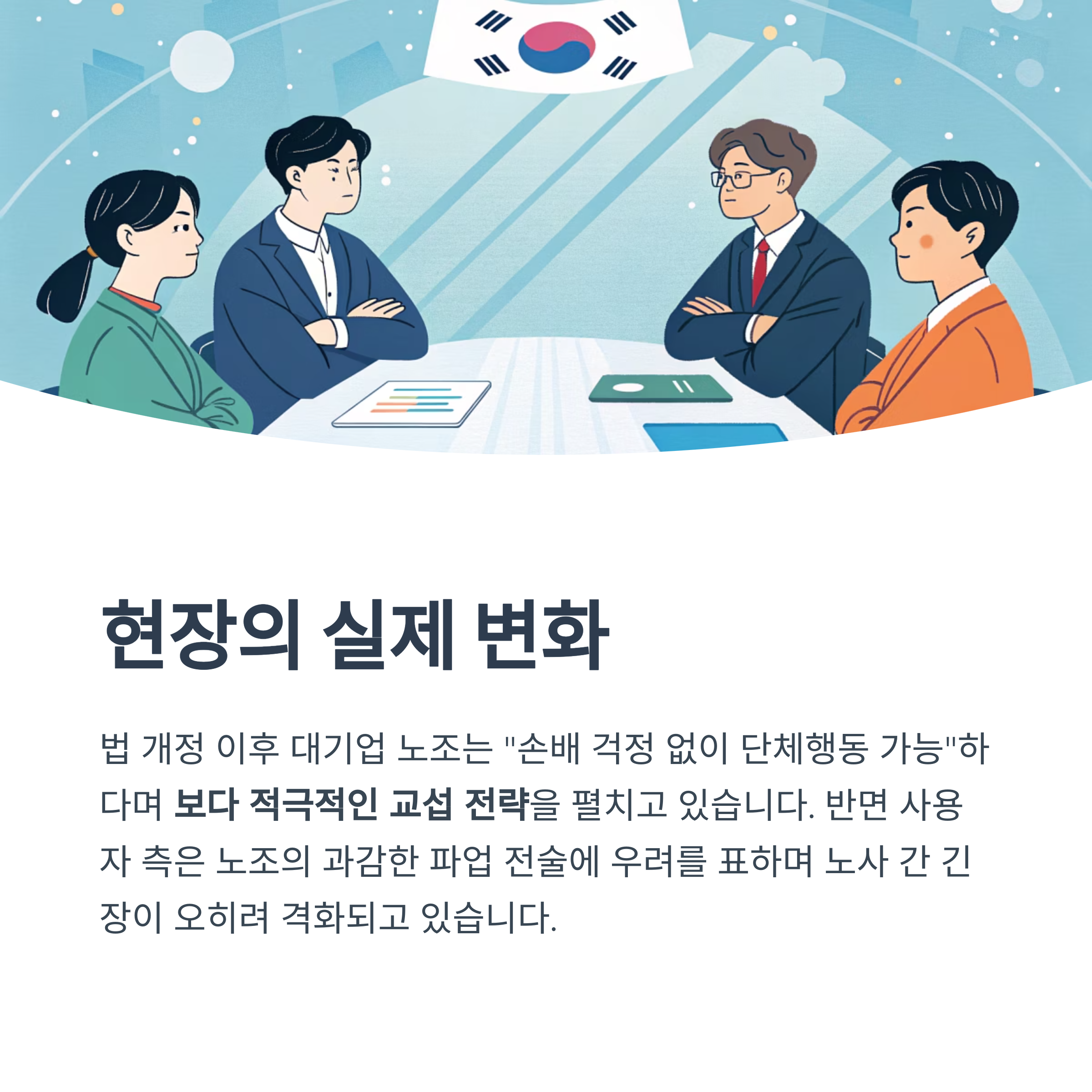 반면 사용자 측은 노조의 파업 전술이 과감해지고 있다며 우려를 표합니다.