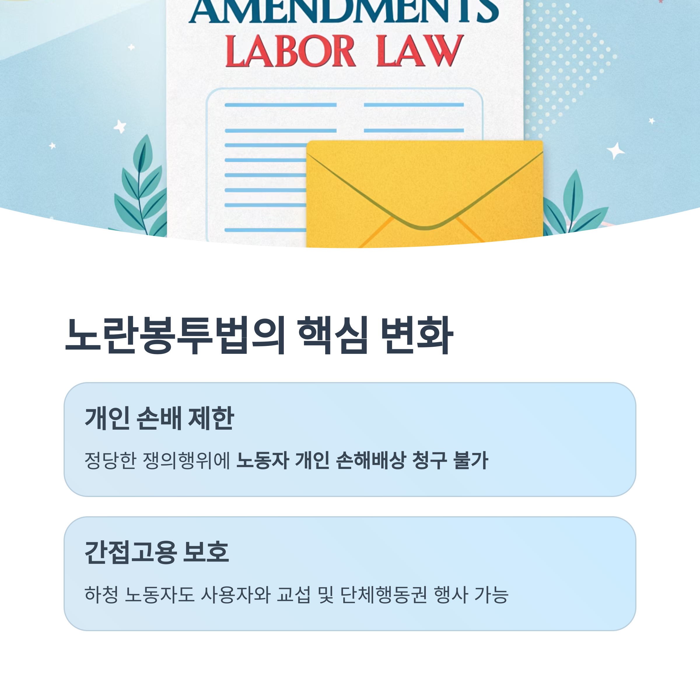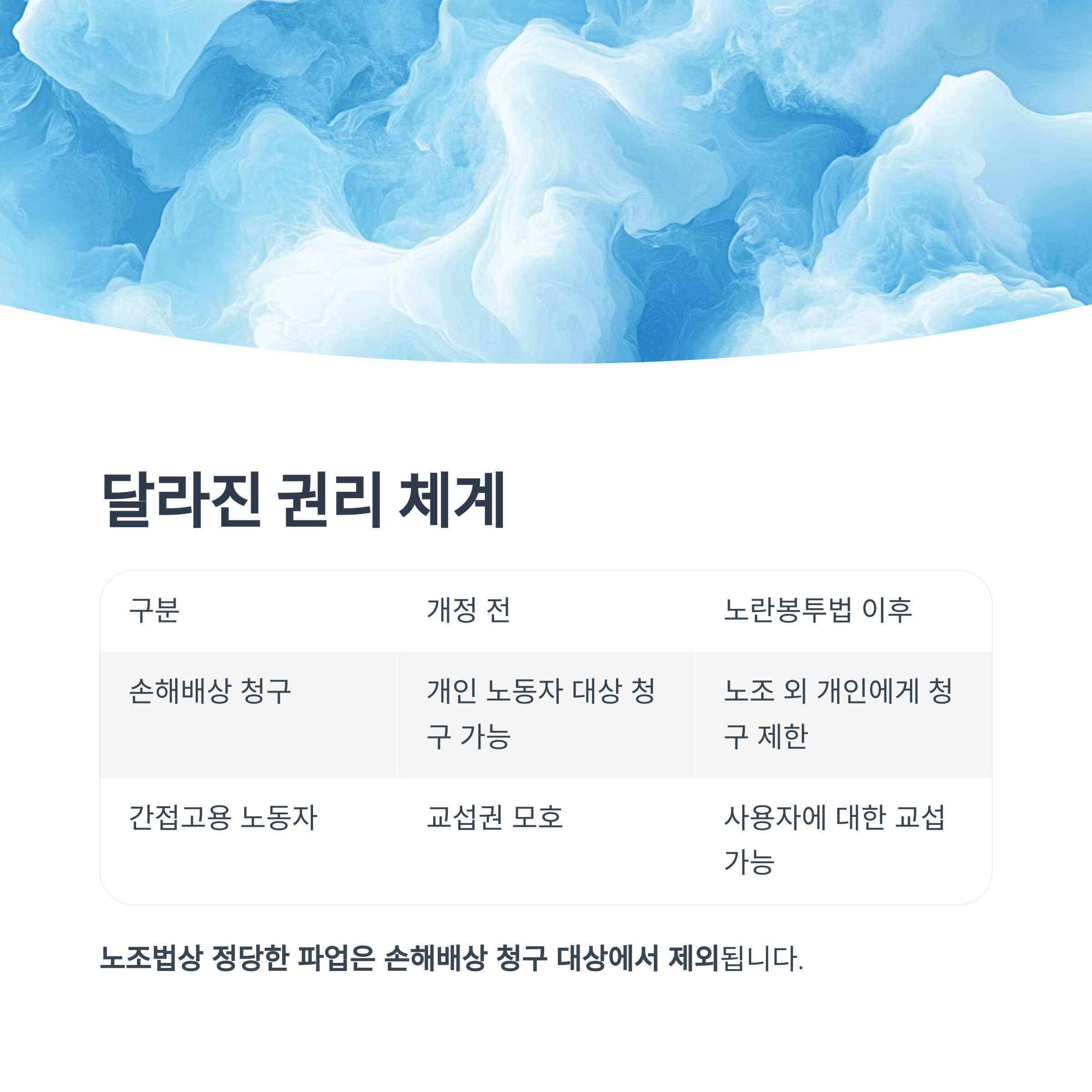 중요한 변화는 “노조법상 정당한 파업은 손해배상 청구 대상에서 제외”된다는 점입니다.