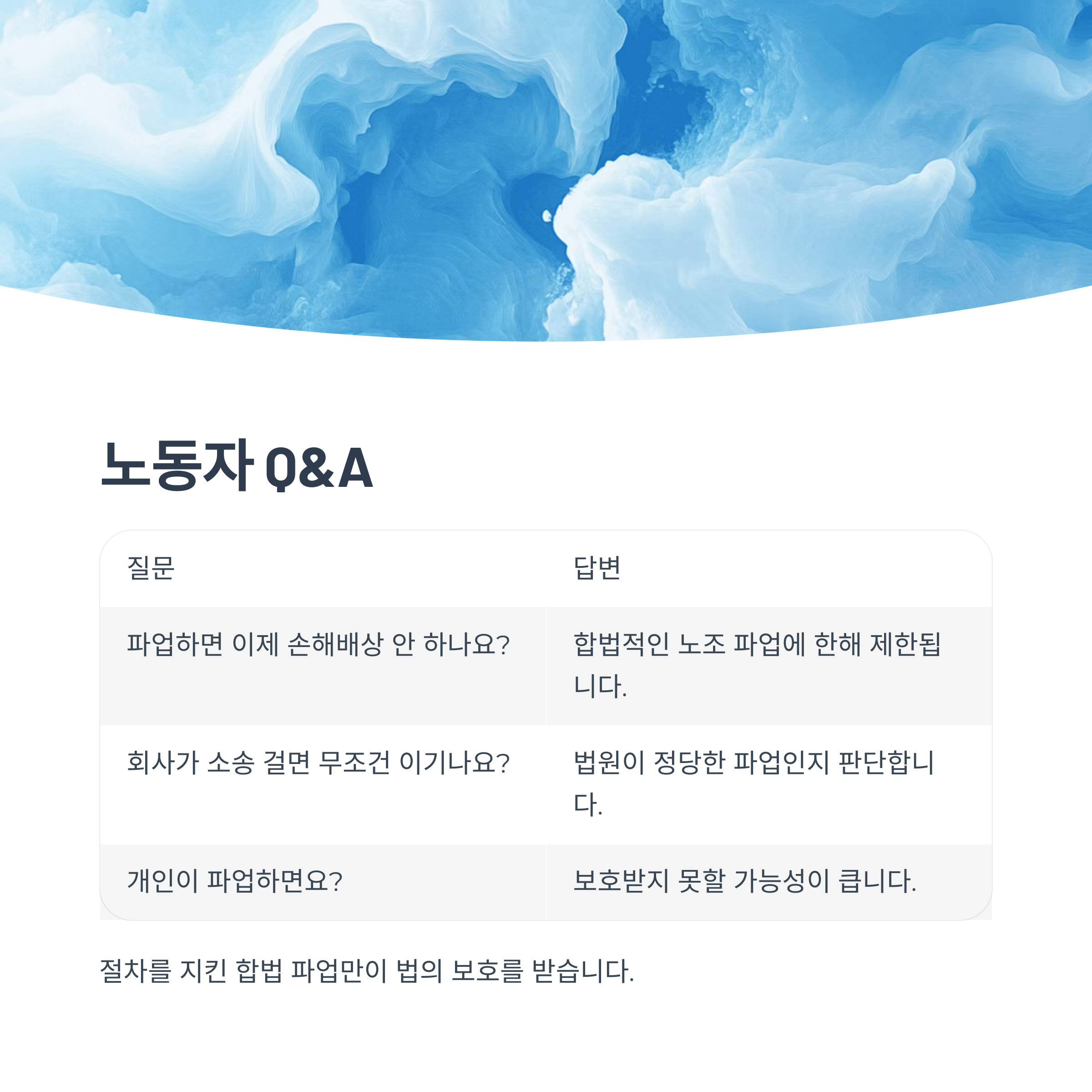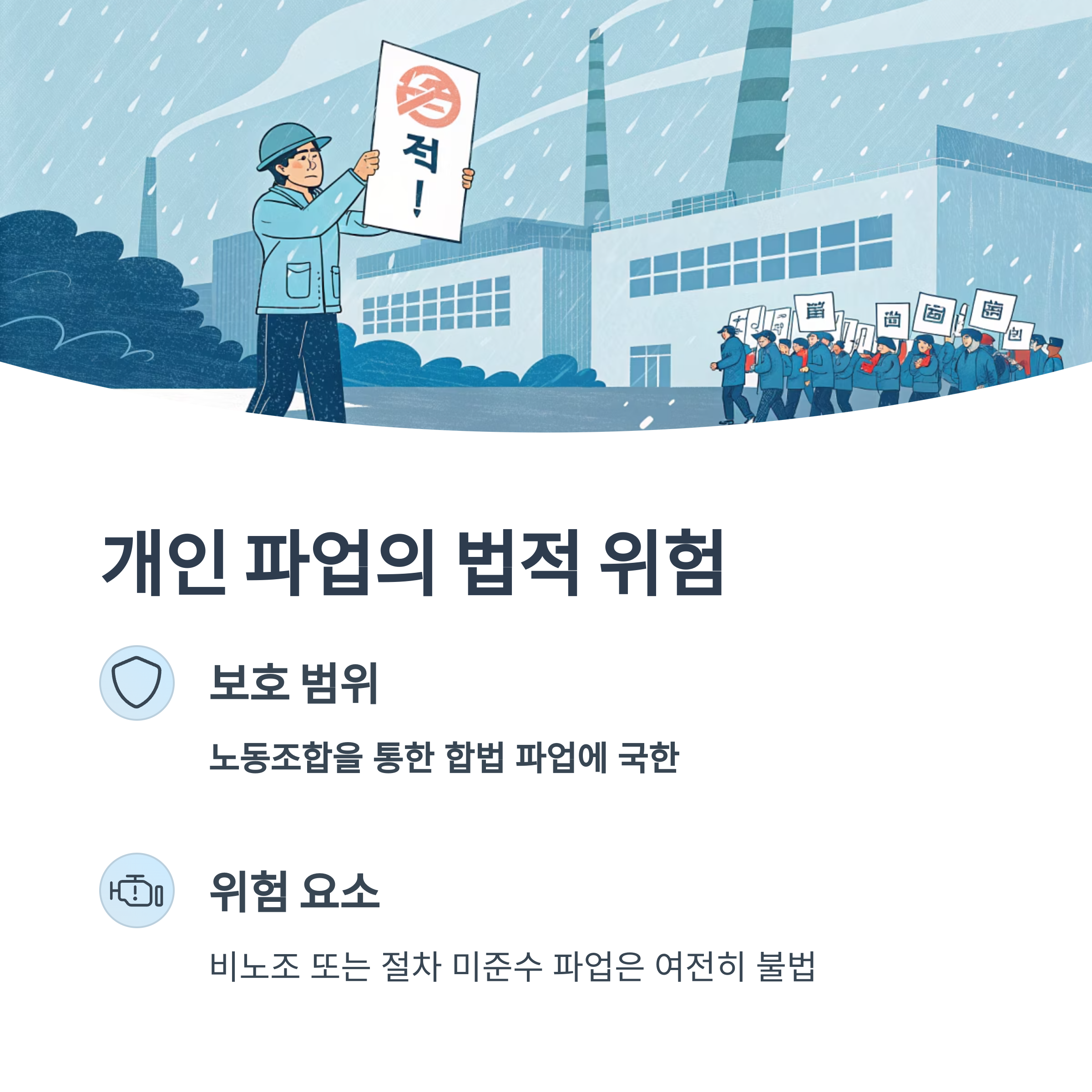 핵심은 절차를 지킨 합법 파업만이 법의 보호를 받는다는 점입니다.