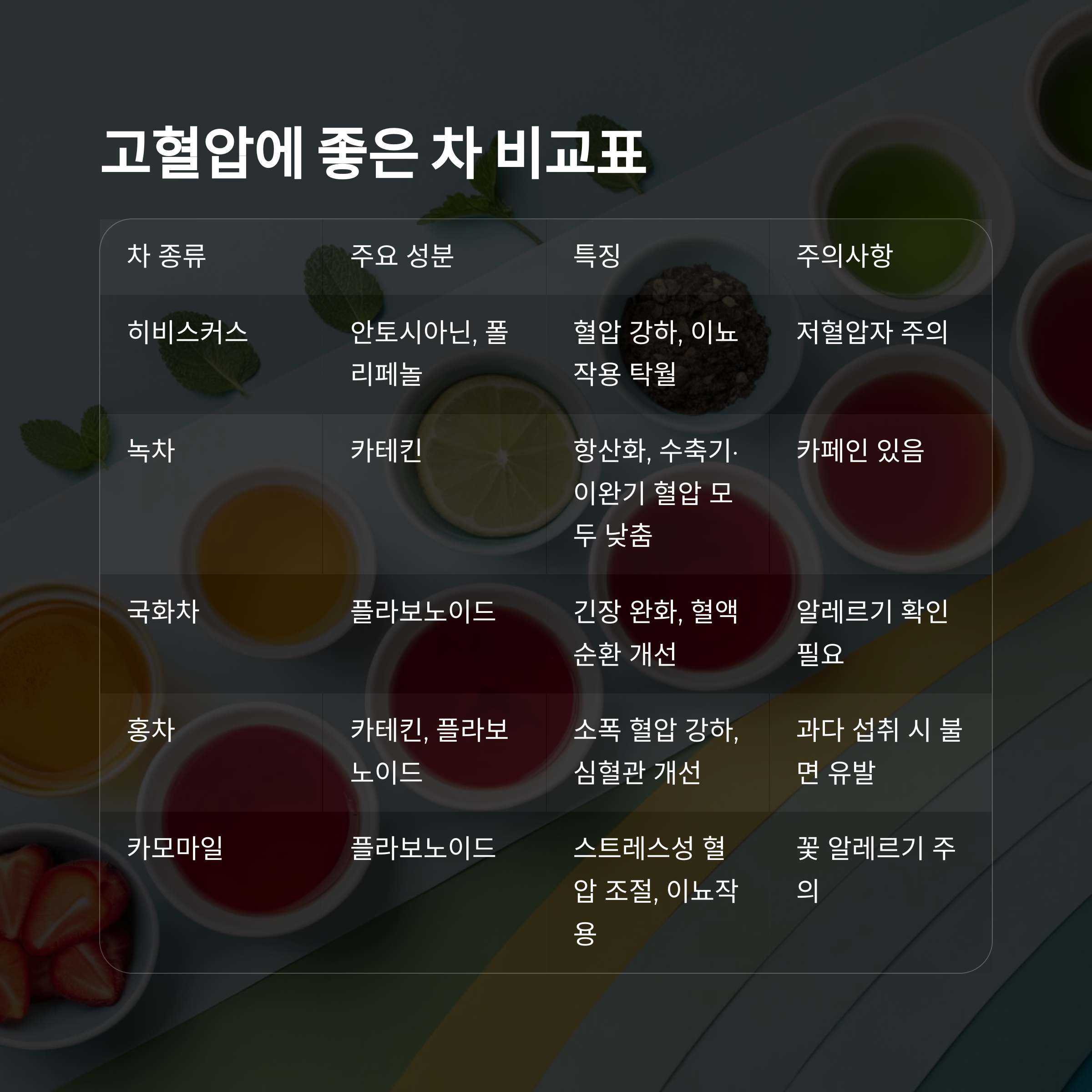 고혈압에 좋은 차 비교표
