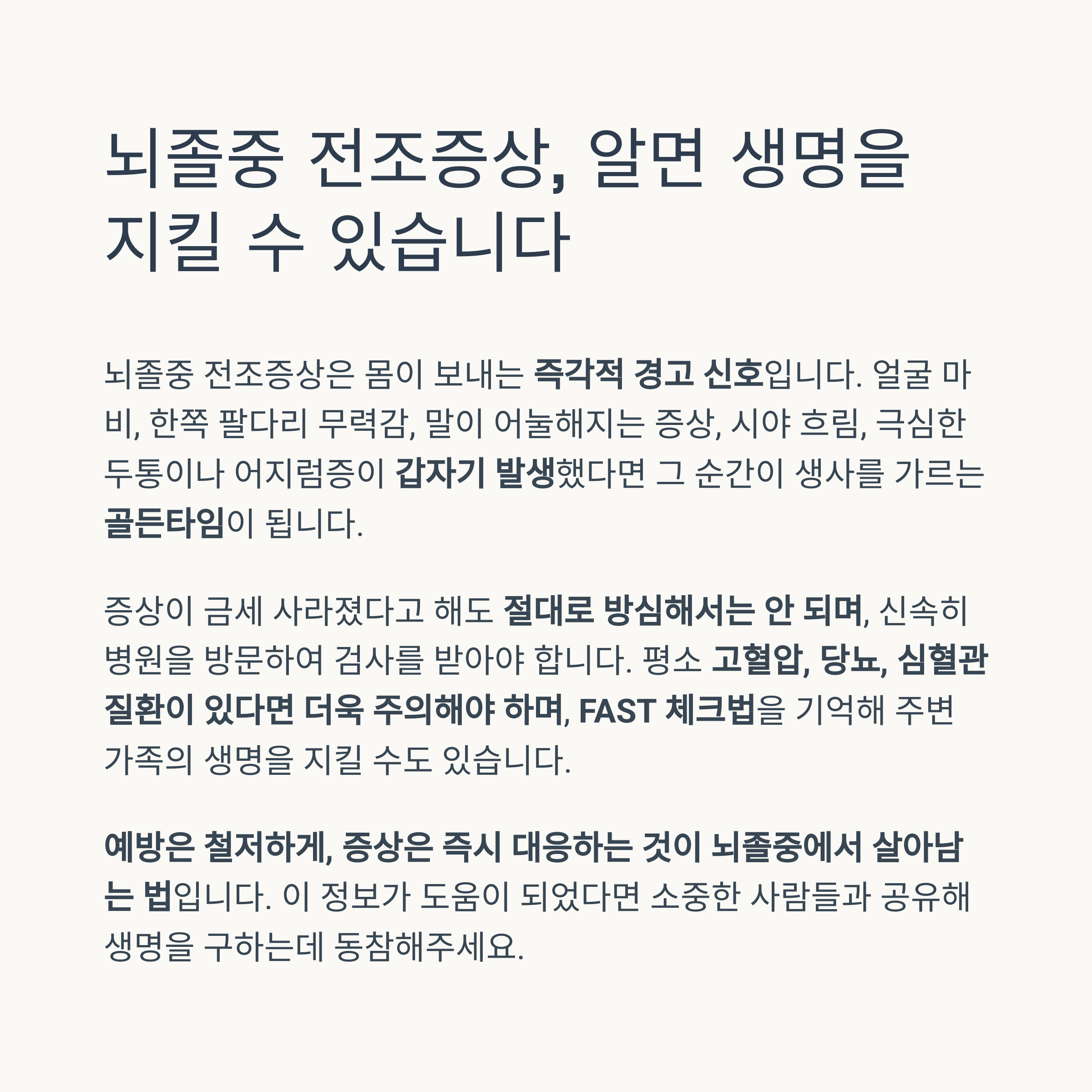 뇌졸중 전조증상은 몸이 보내는 즉각적 경고 신호입니다