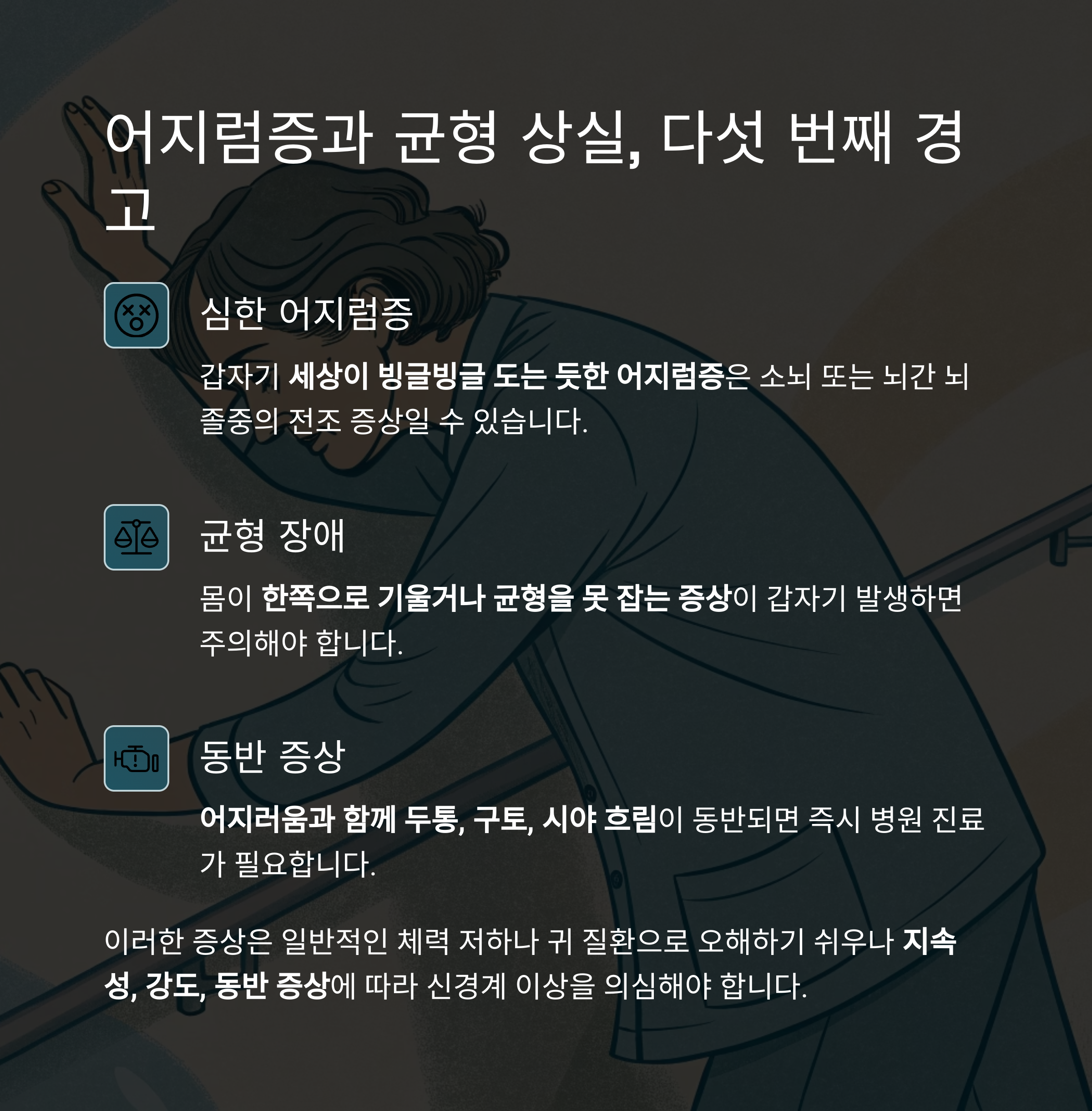 극심한 어지럼증과 균형 상실도 뇌졸중 위험 신호입니다