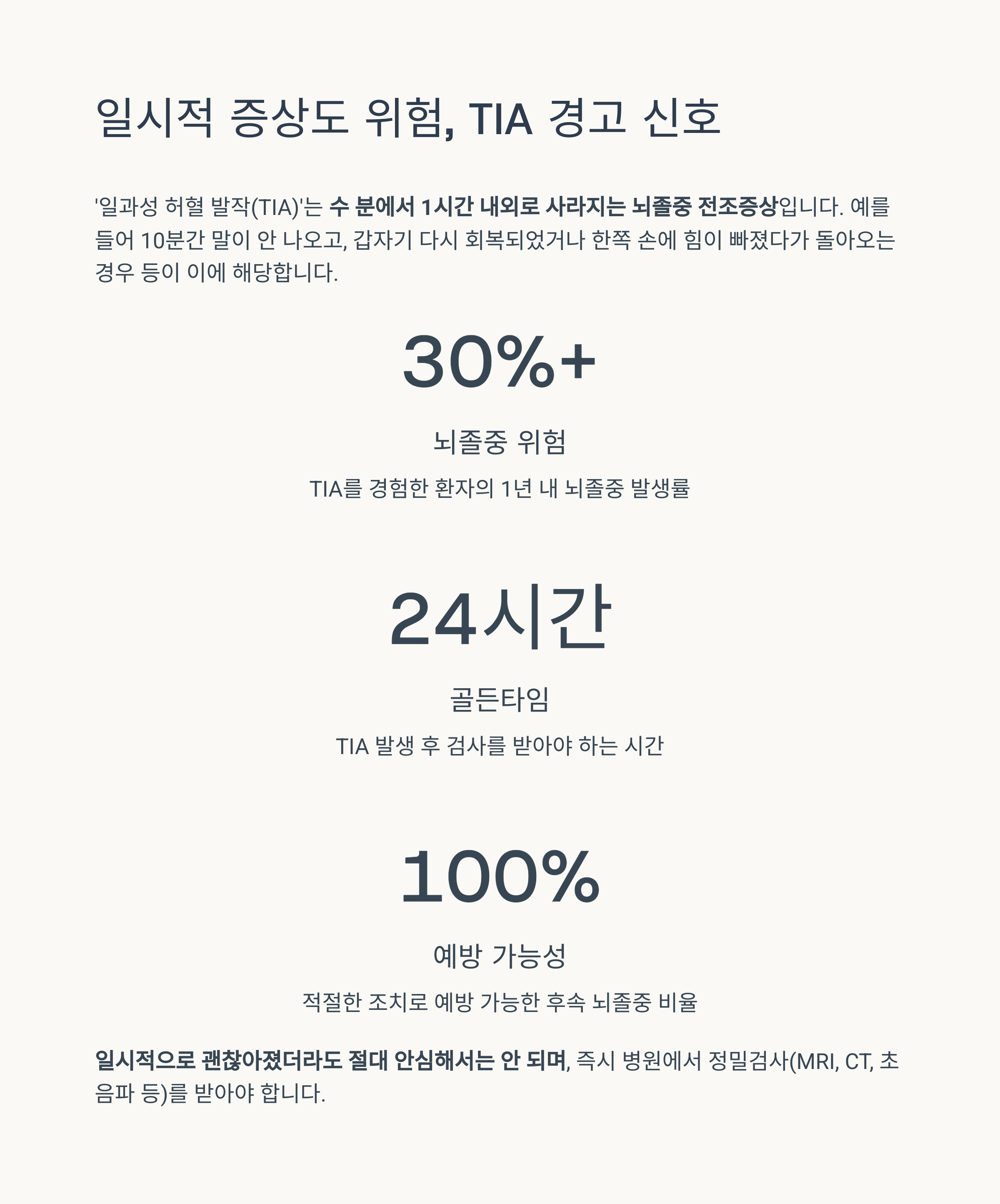 일시적 증상이라도 무시하지 마세요, TIA의 경고를 알아야 합니다
