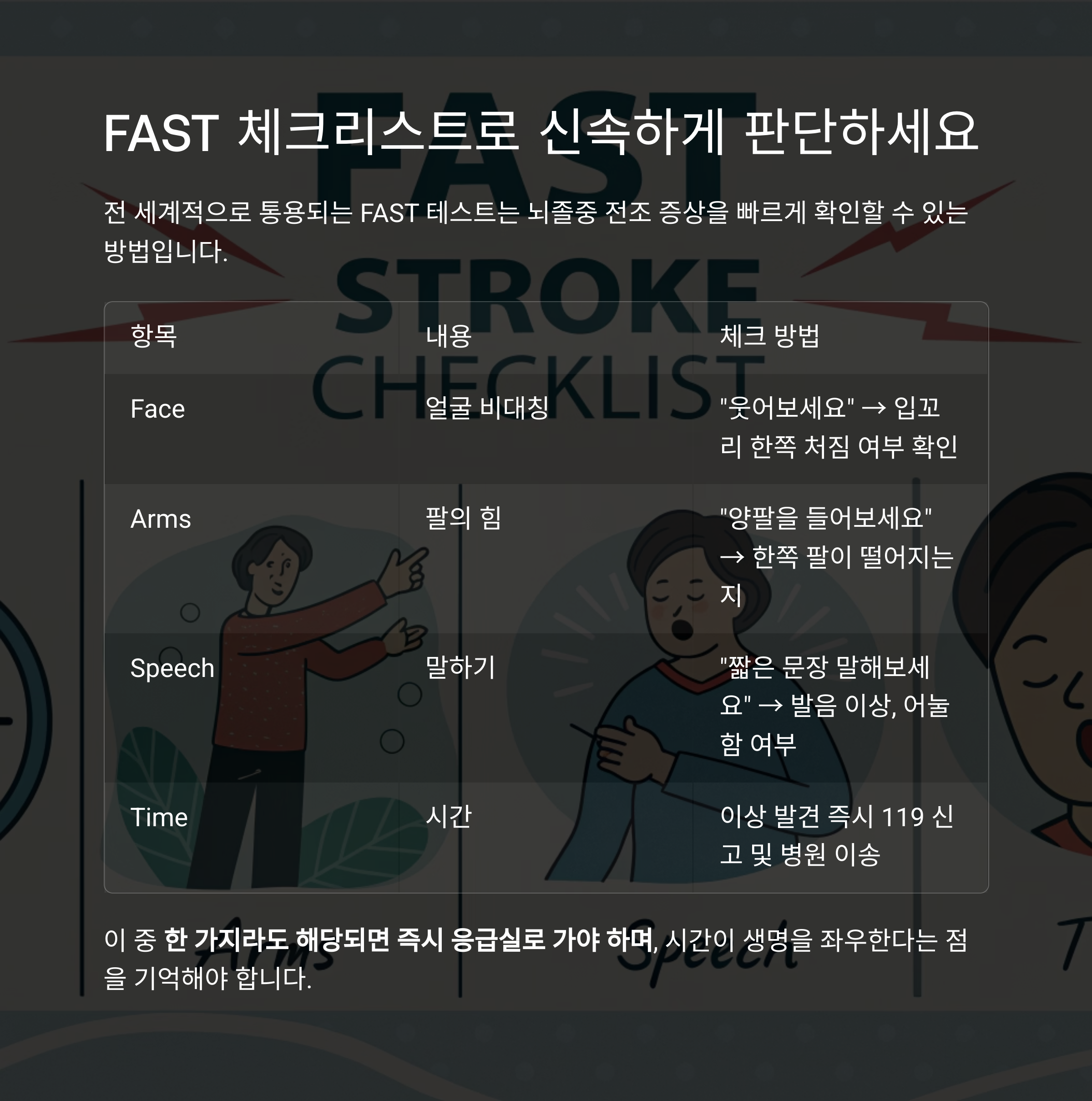 뇌졸중 전조 증상, 이렇게 판단하세요: FAST 체크리스트 활용