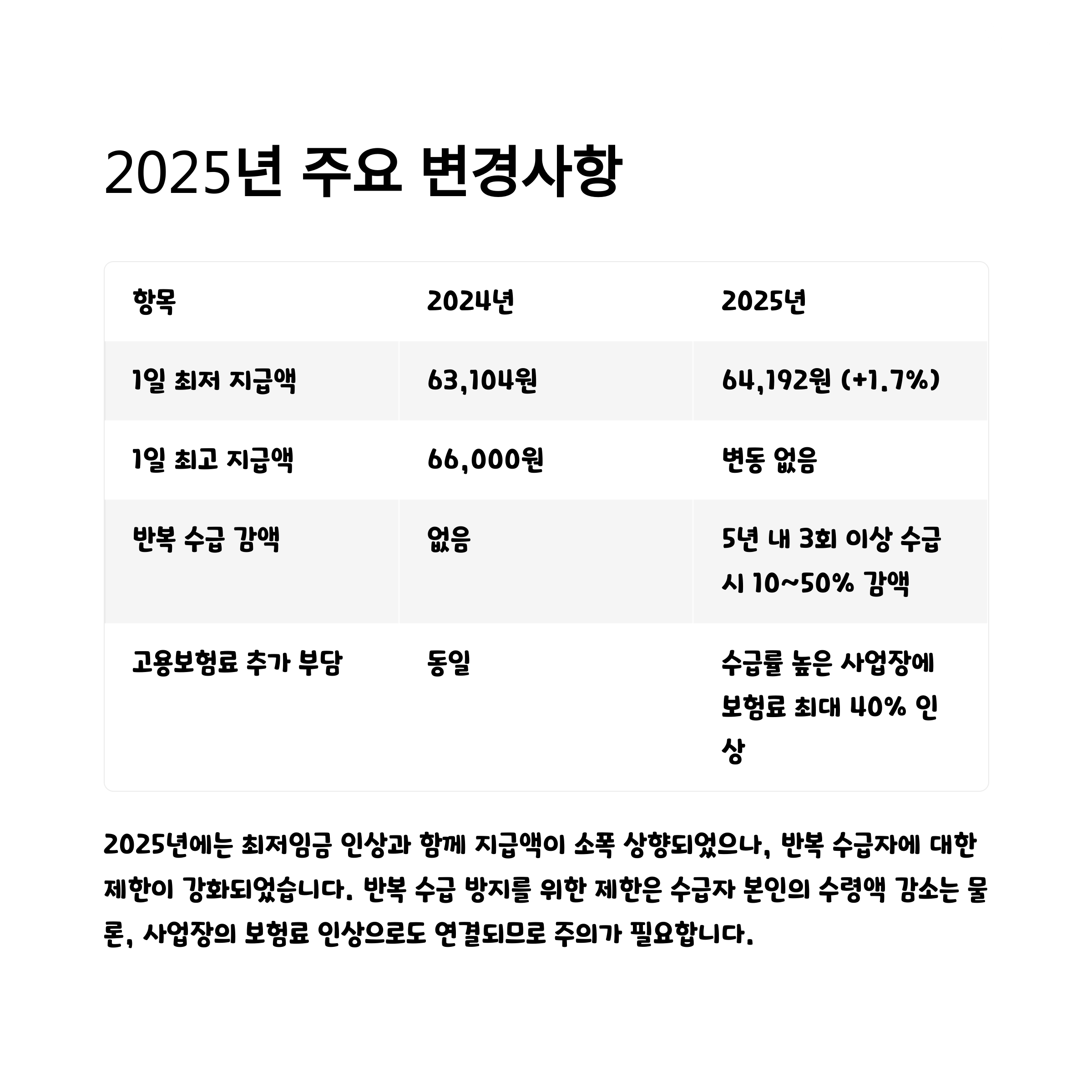 특히 2025년에는 반복 수급 제한, 지급 상한 조정 등 변화가 있는 만큼