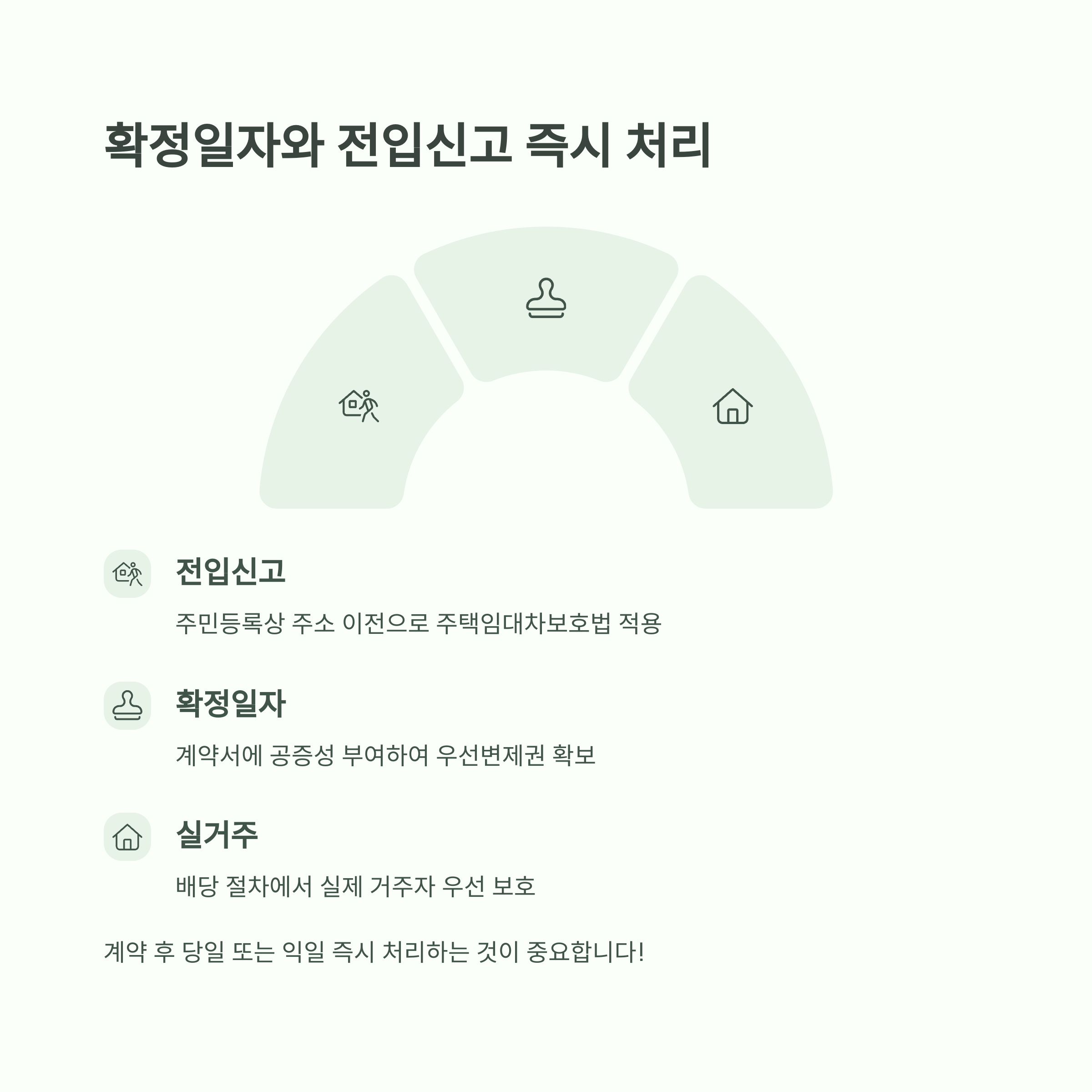 따라서 계약 후 당일 또는 익일 즉시 전입신고 및 확정일자를 받는 것이 중요합니다