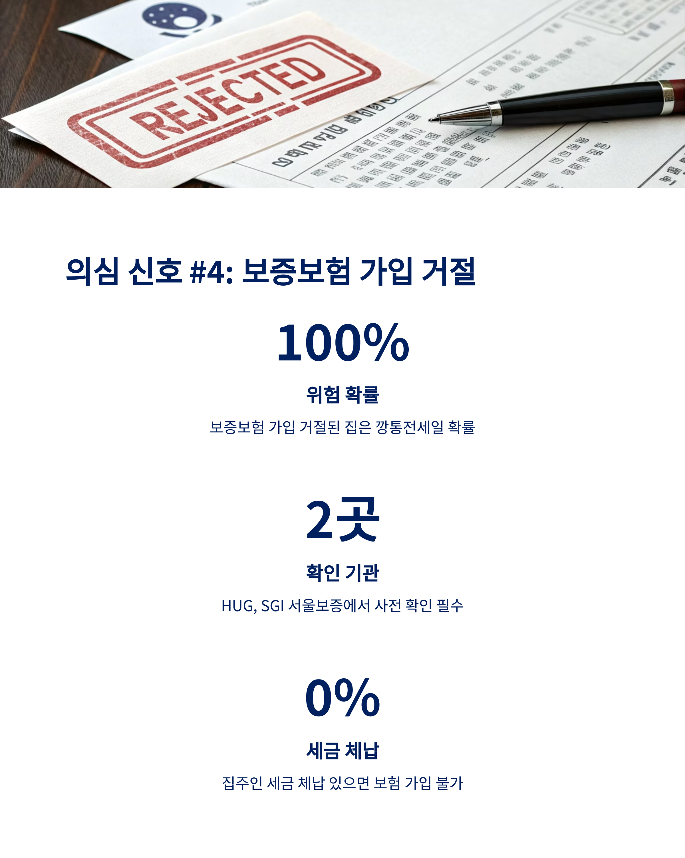 보증보험 가입이 거절된 집은 깡통전세 또는 위험 자산일 확률이 매우 높습니다