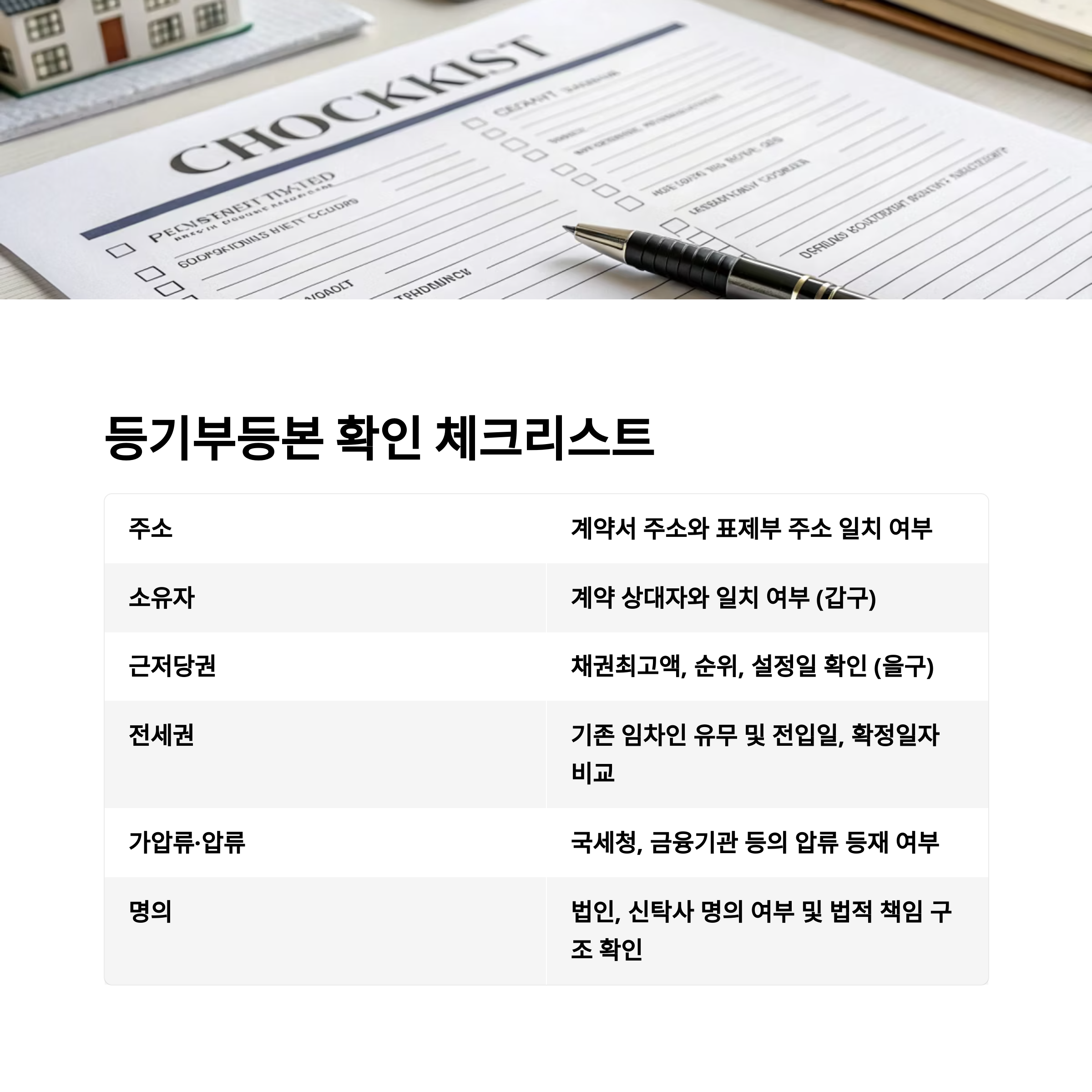 전세계약 전 등기부등본 확인 요약 체크리스트