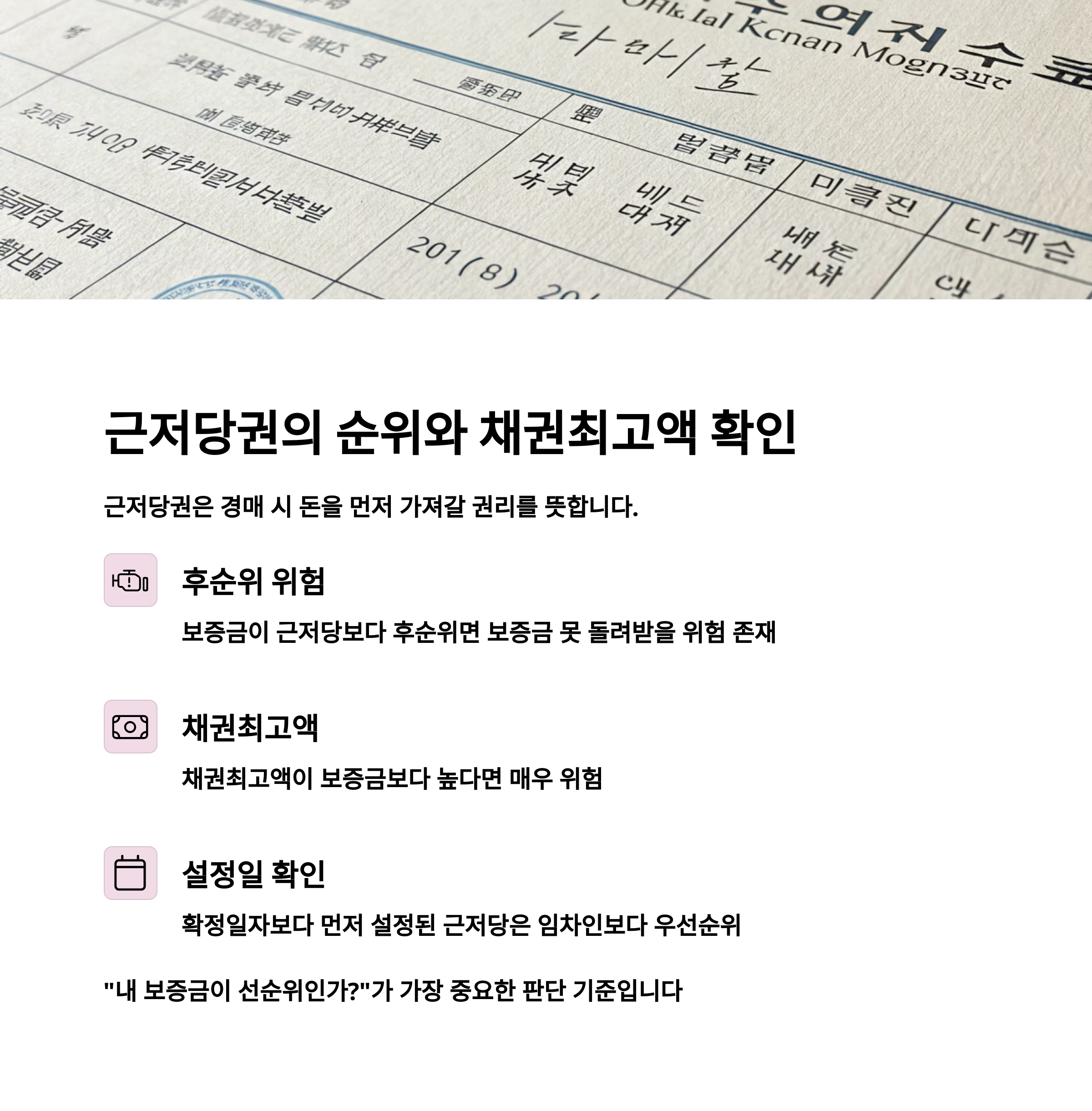 → "내 보증금이 선순위인가?"가 가장 중요한 판단 기준입니다