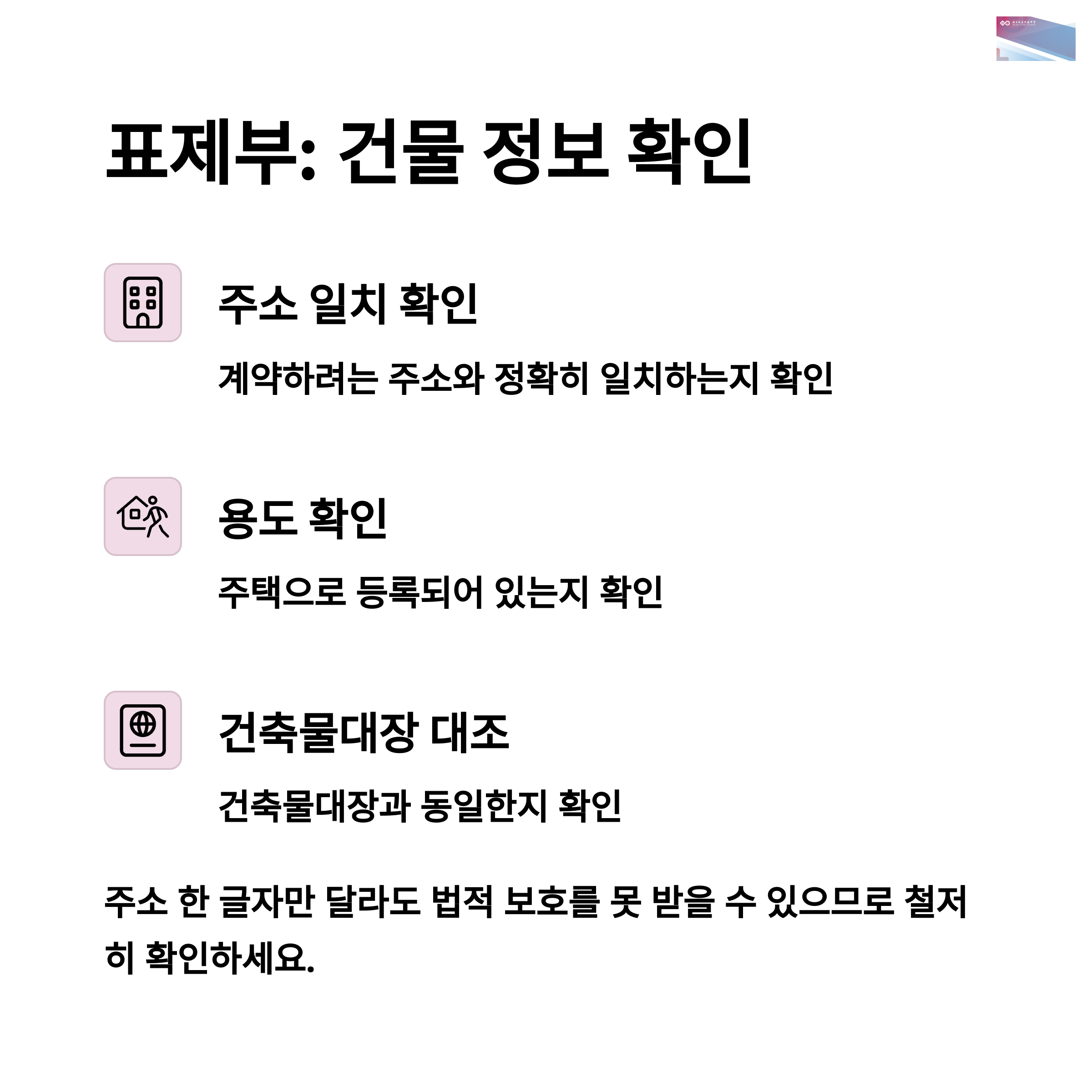 주소 한 글자만 달라도 법적 보호를 못 받을 수 있으므로 철저히 확인하세요