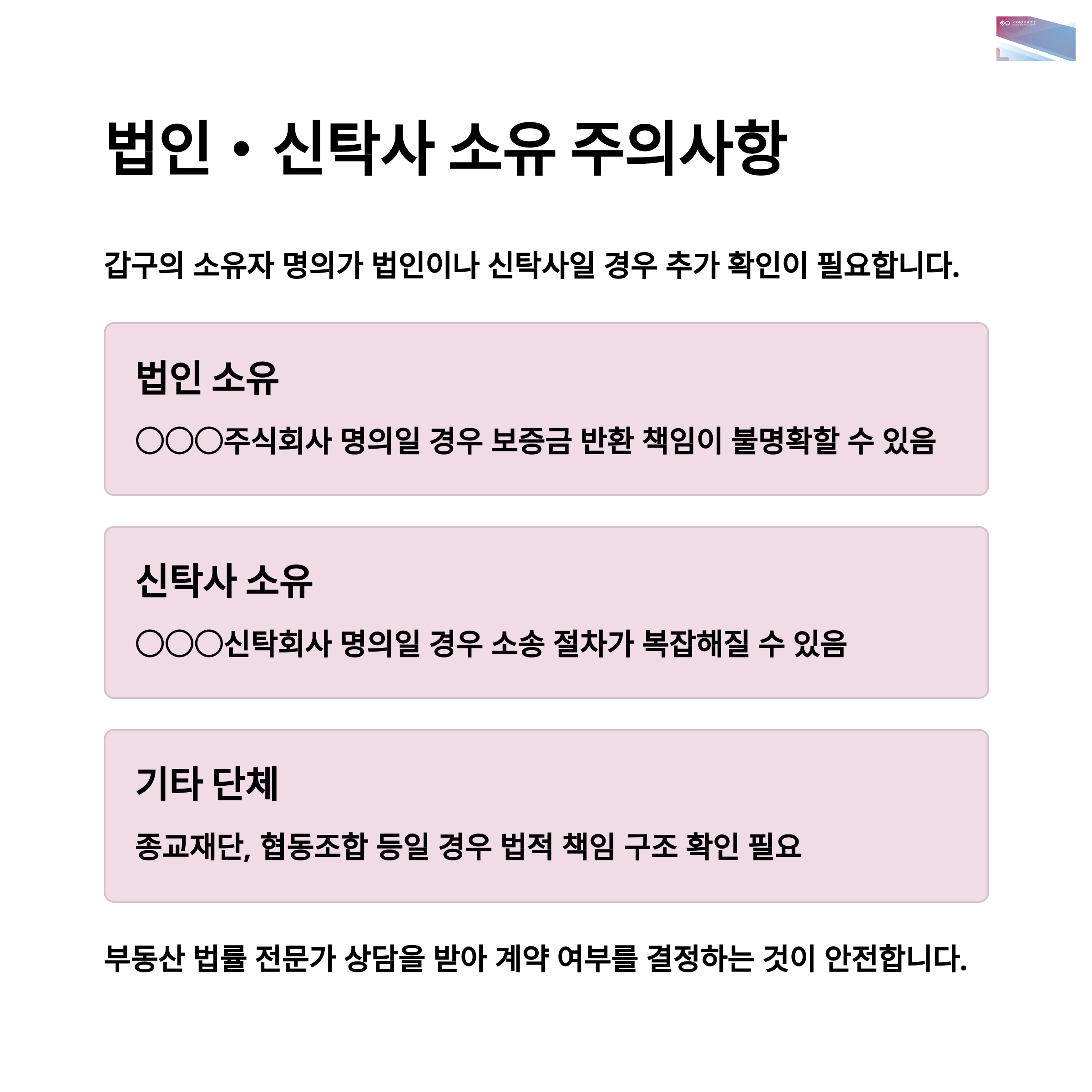 ⑥ 소유자가 법인·신탁사일 경우 추가 확인 필요