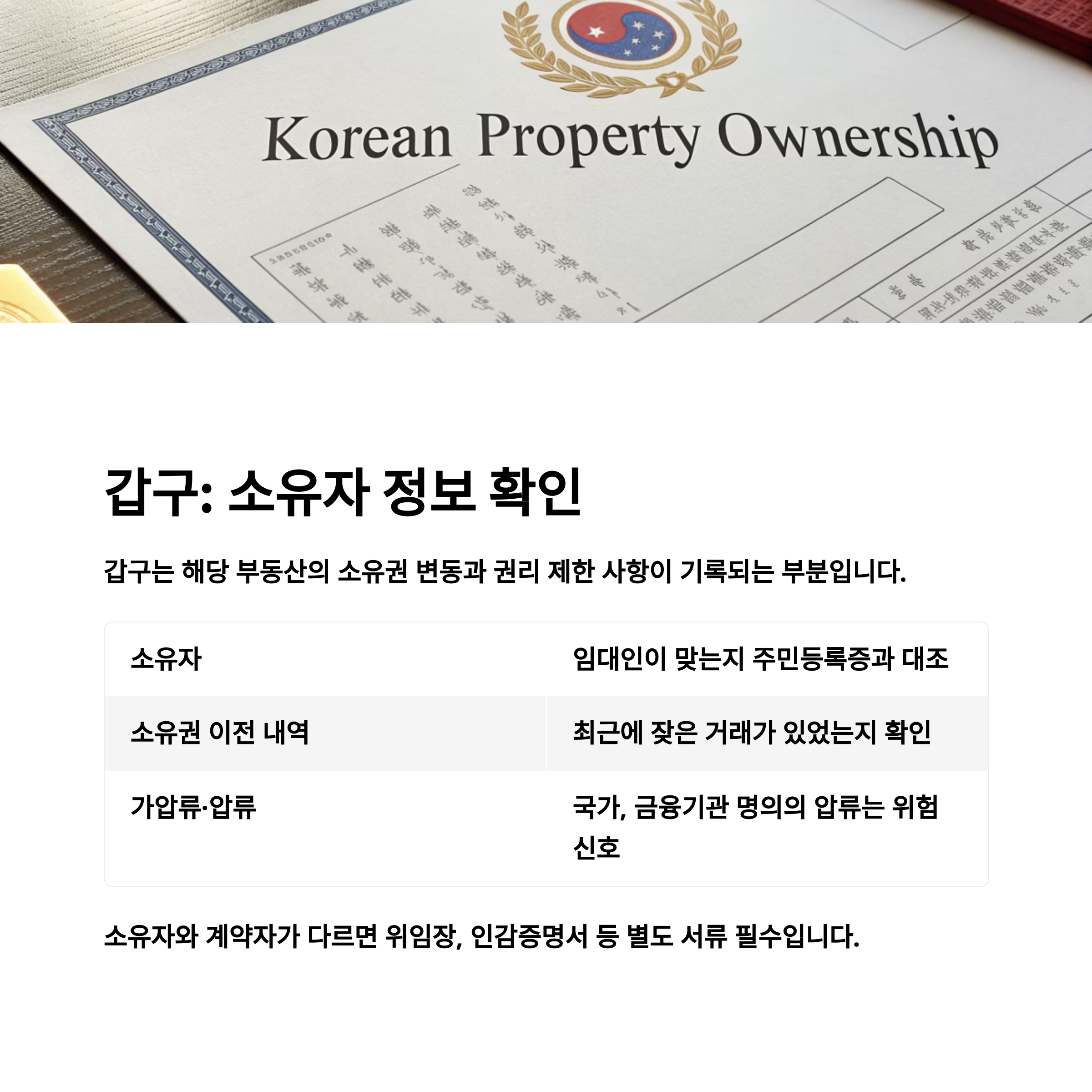 | 소유자 | 계약 상대자와 일치 여부 (갑구) |