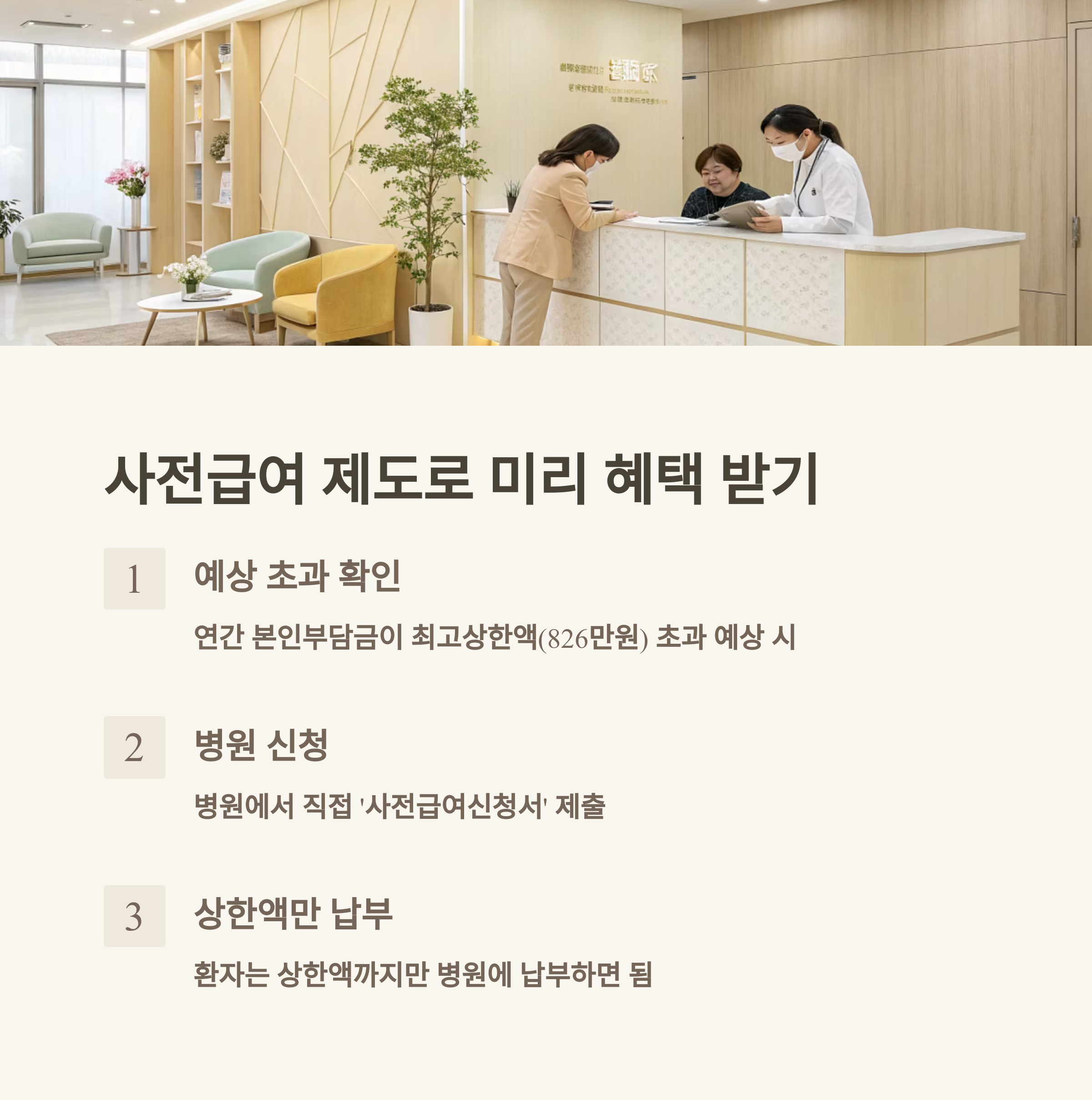 - **연간 본인부담금이 최고상한액(826만 원)**을 초과할 것으로 예상되면
